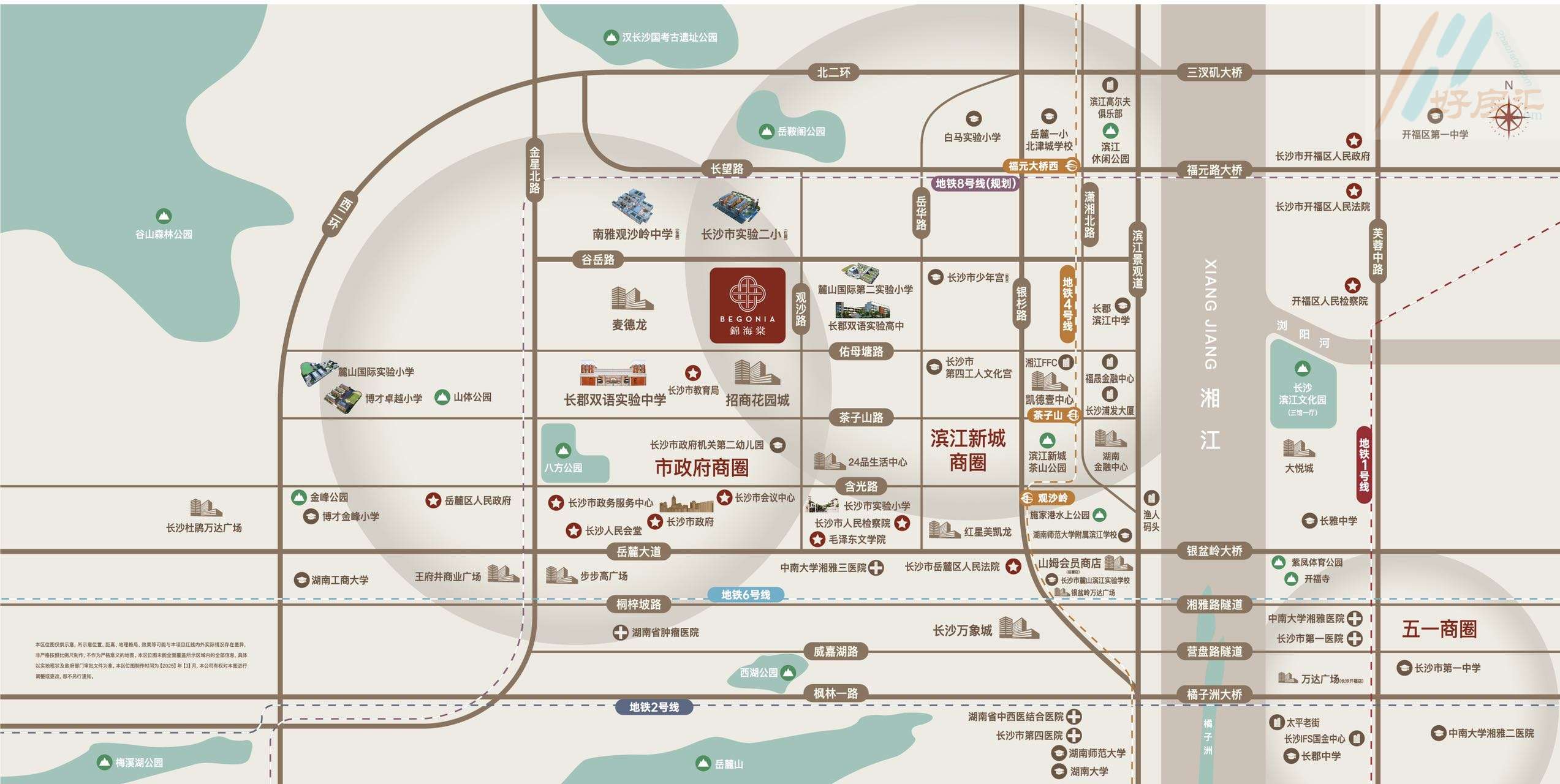 坐拥生态自然:直线3km内有谷山森林公园等,距橘子洲景区直线5km。