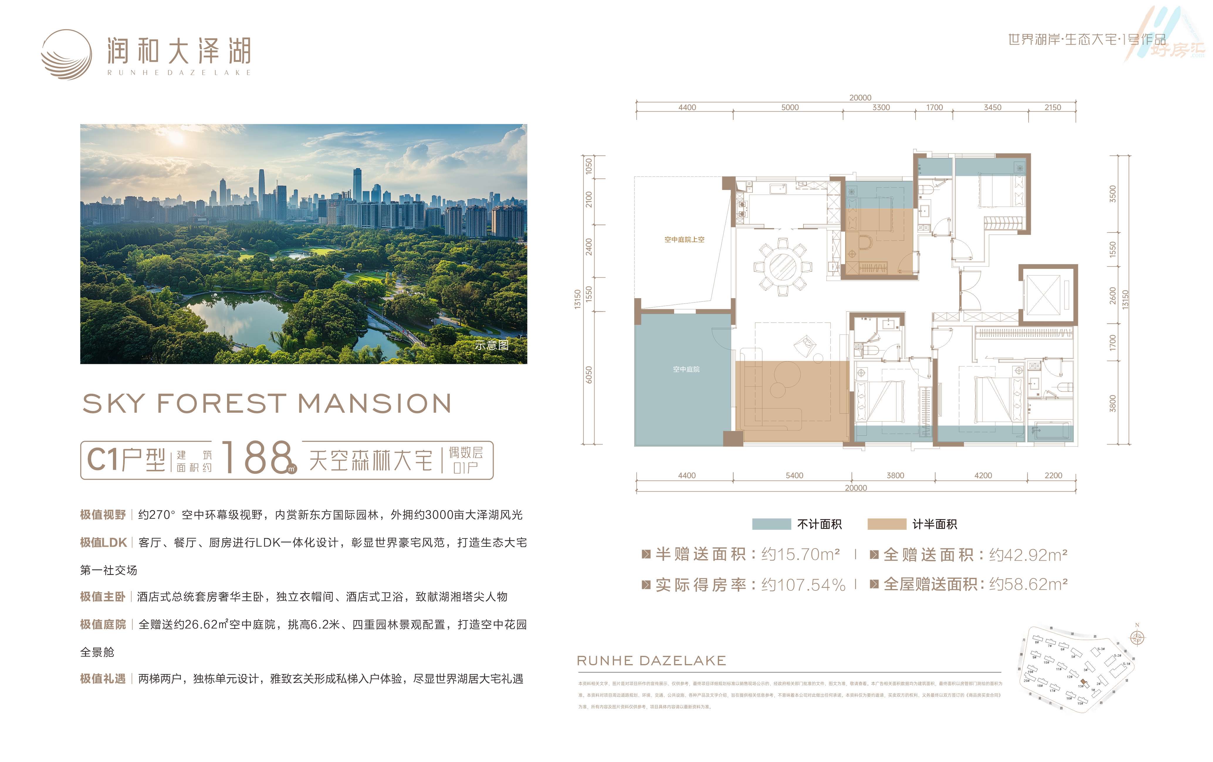 世界向我 风格重新诞生 润和大泽湖开创湖湘超级豪宅产品革新,在传统大平层的基础上,通过垂直绿化的空间形制、空中庭院产品形态,以曲直并进的立面设计,体现超前时代的世界审美。